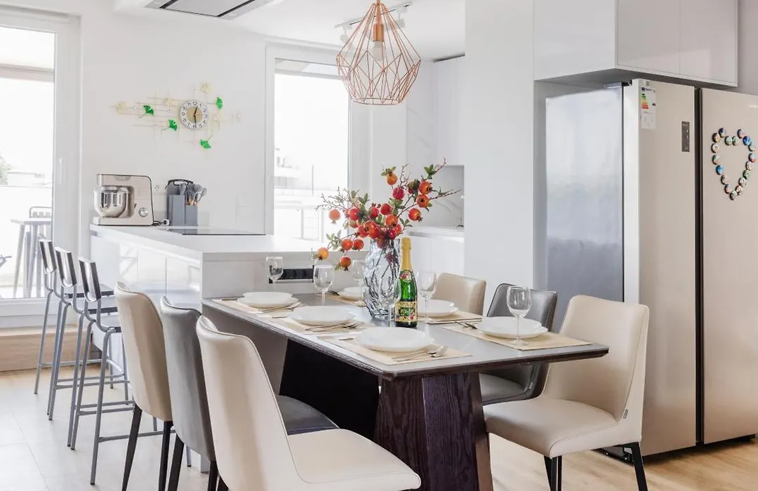 W Home - Luxury Penthouse - Sky Garden & Terrace - Free Parking - Sleeps 12 apartment is equipped with a fully-fitted kitchen. The nearest airport is Budapest Ferenc Liszt International, 20 km from the property, and Muzsikus ciganyok parkja bus station is merely 100 metres away.